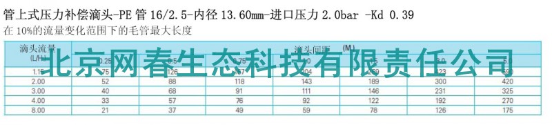 滴头技术参数: