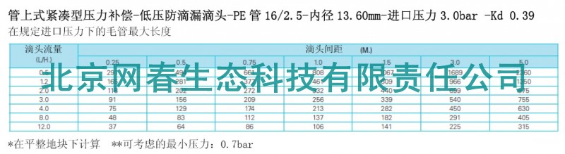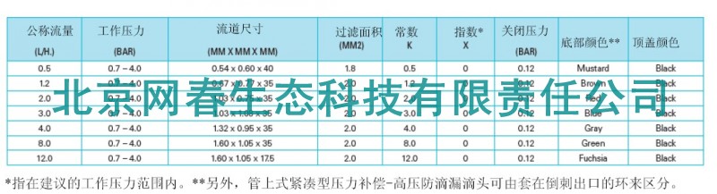 滴头技术参数: