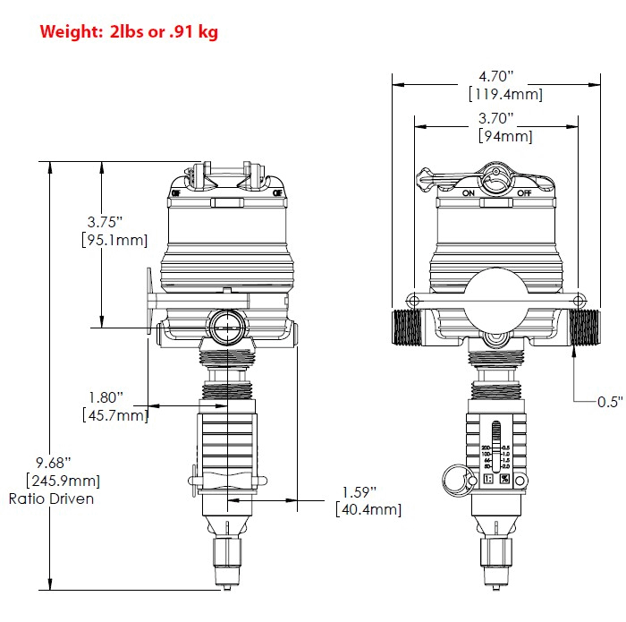 | SuperDos 200.3%2.5%5.0%10 % 运行流量0.04 - 20 gpm0.04 - 20 gpm0.04 - 20 gpm0.04 - 20 gpm配比比例0.025% - 0.30%1:4000 - 1:3330.20% - 2.50%1:500 - 1:400.40% - 5.0%1:250 - 1:202% - 10%1:50 - 1:10运行压力6 - 100 psi6 - 100 psi6 - 100 psi5 - 65 psi安装螺纹1 " npt/bsp1 " npt/bsp1 " npt/bsp1 " npt/bsp |